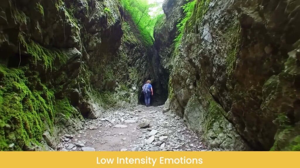 - And for low intensity emotions, you’re on a path with the walls closing in, heading into a narrow crevice.
