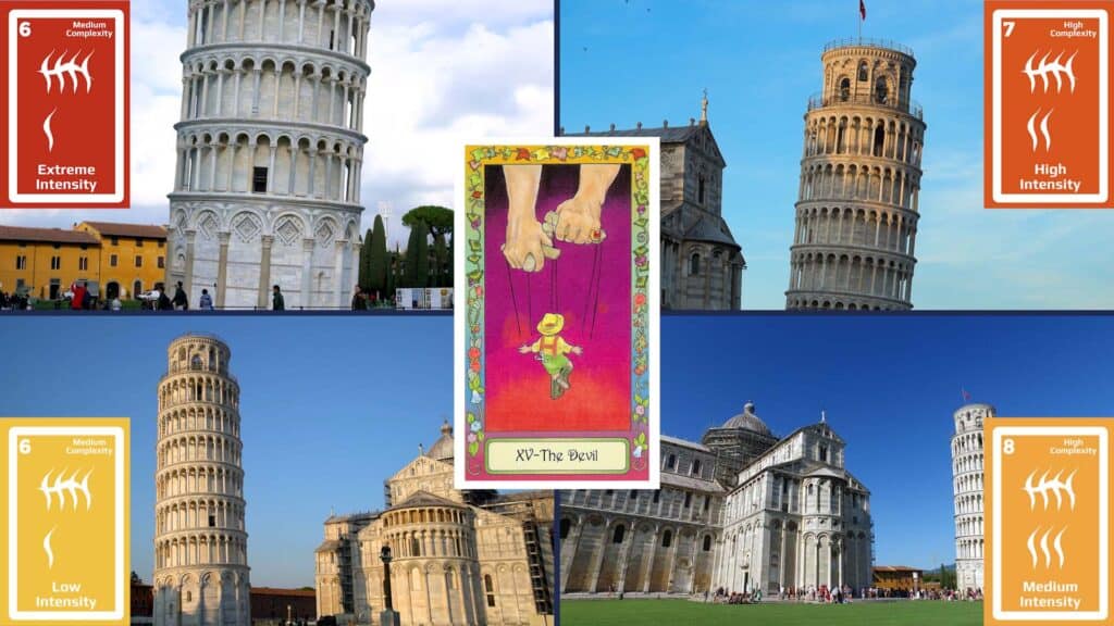 I’m using the Leaning Tower of Pisa for all emotional intensities; your imagery could be completely different. If you find yourself leaning towards something or leaning away from something, look to:
